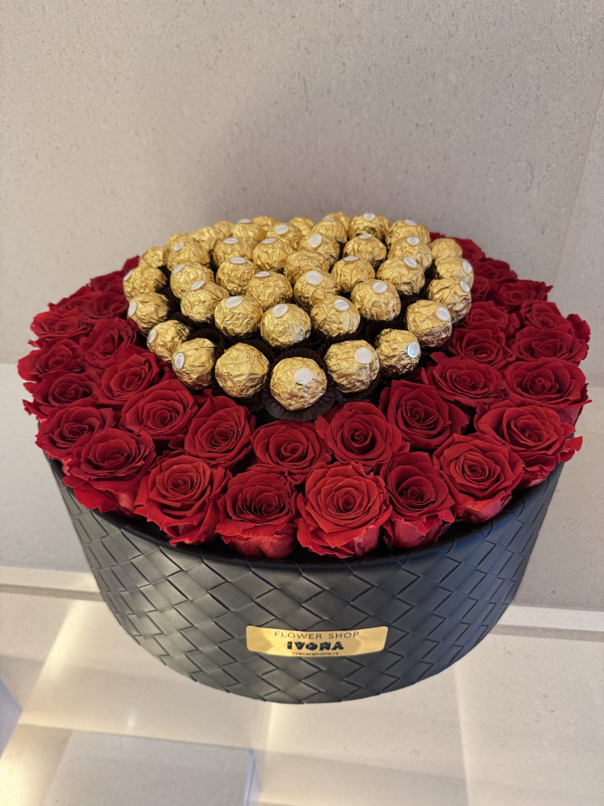 Crno srce sa medama i crvenim dehidriranim ruzama