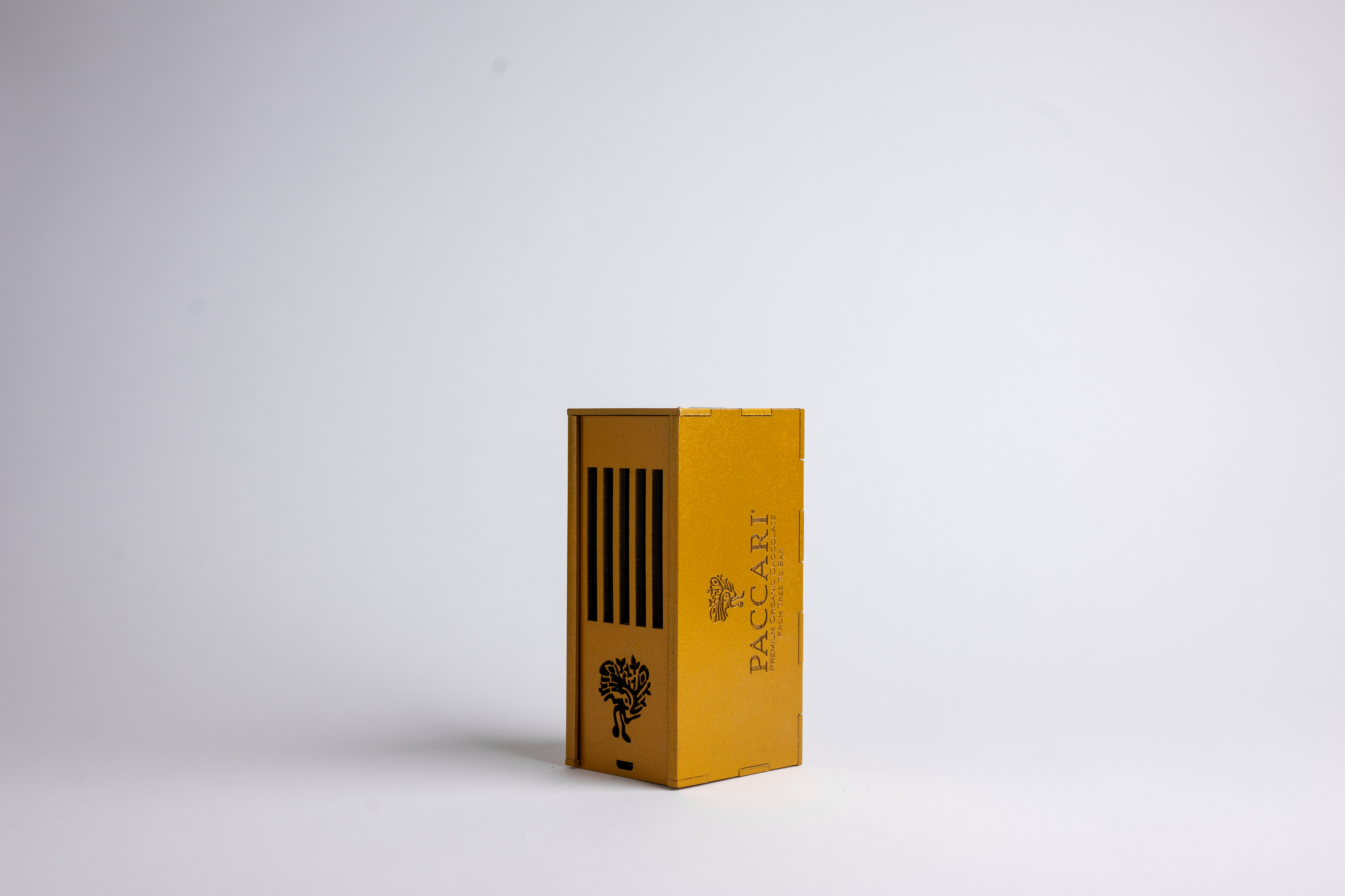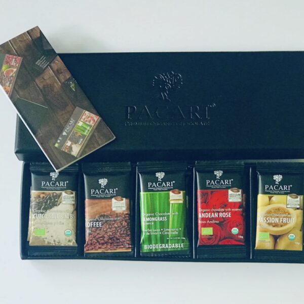 Paccari drveni box, sa 5x50g veganske cokolade. Box moze biti i zlatnoj, ljubicastoj i plavoj boji.