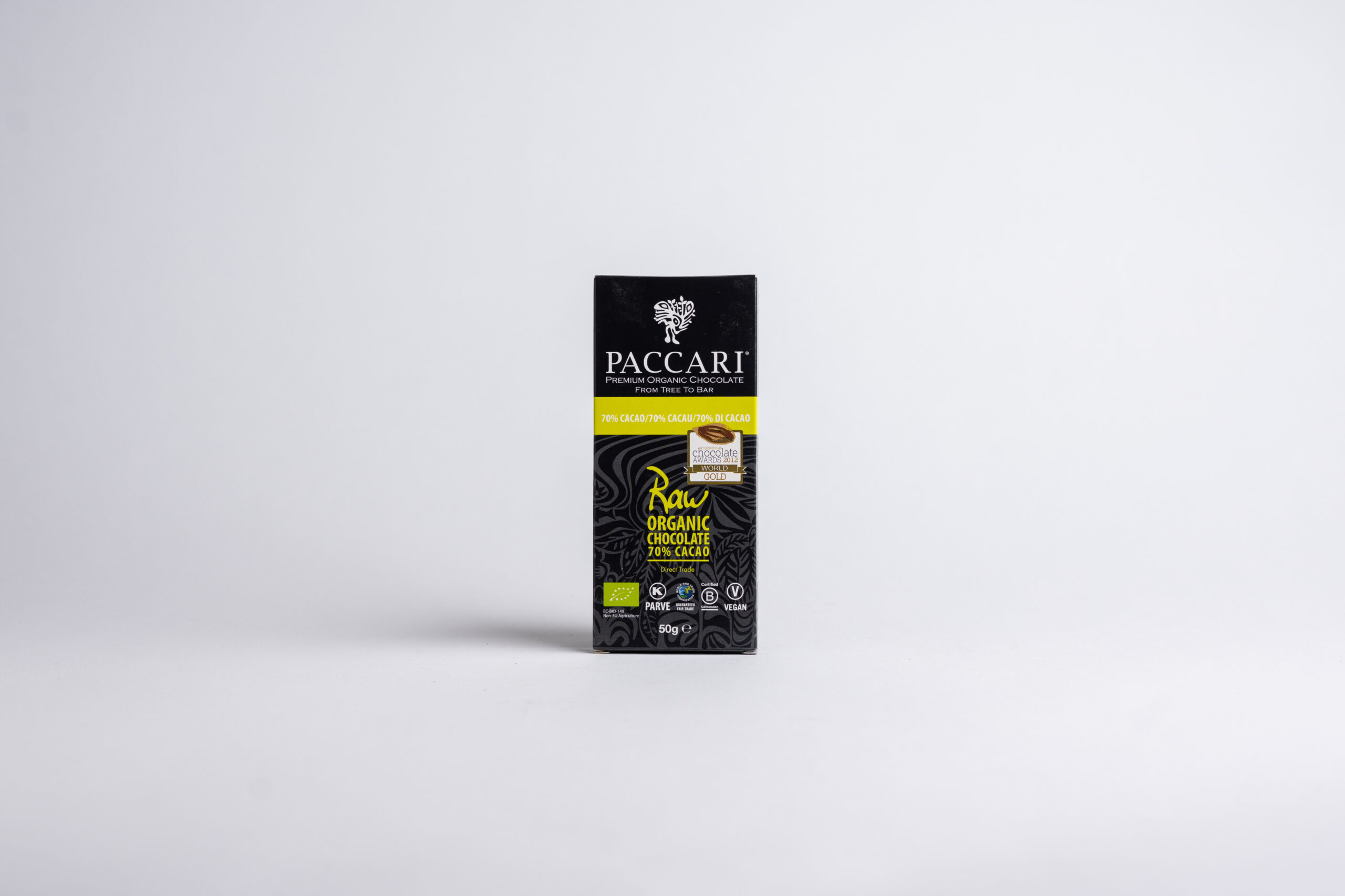 Paccari RAW organska tamna čokolada sa 70% kakaa donosi izražene cvetne note, nijanse crvenog voća i suptilne drvenaste i začinske tonove od 50 grama.