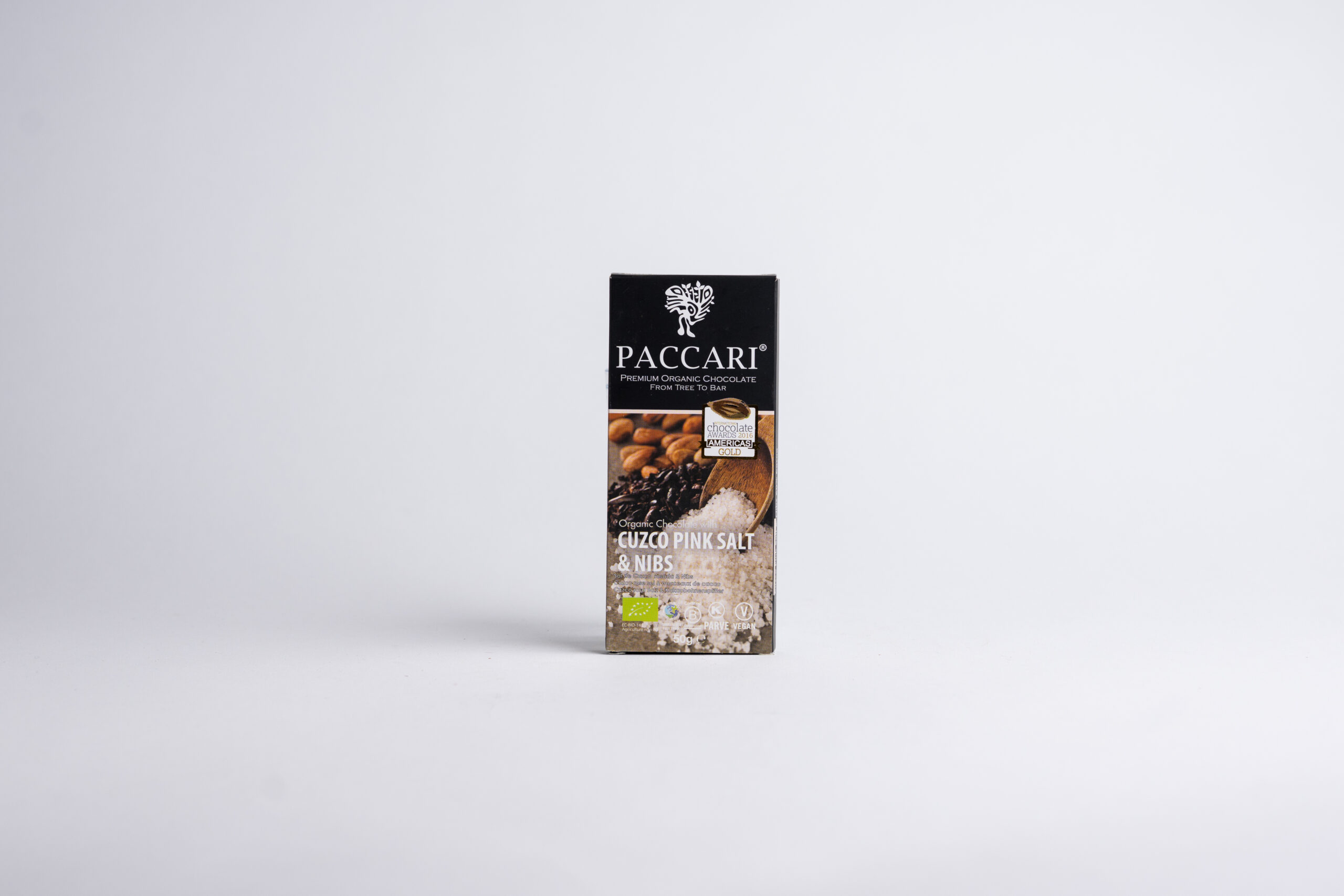 Paccari organska čokolada sa solju iz Cuzca i organskim komadićima kakao zrna.